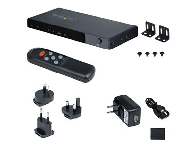 Produktbeskrivning StarTech.com 4-Port 8K HDMI Switch, HDMI 2.1 Switcher 4K 120Hz HDR10+, 8K 60Hz UHD, HDMI Switch 4 In 1 Out, Auto/Manual Source Switching, Remote Control and Power Adapter Included - 7.1 Channel Audio/eARC (4PORT-8K-HDMI-SWITCH) - video-/ljudomkopplare - 4 portar Typ av enhet Video-/ljudomkopplare - 4 portar Undertyp HDMI Portar 4 x HDMI Prestanda Bandbredd: 48 Gbps Funktioner 7.1-kanaligt ljudstöd, metallhölje, Dolby TrueHD support, DTS-HD Master Audio support, fungerar med Dolby Atmos, fungerar med DTS:X, automatisk omkoppling, stöd för HDR10+, tryckknapp, VRR, ALLM Standarder som följs HDCP 1.4, HDCP 2.2, HDCP 2.3 Strömtillförsel AC 100-240 V 0.3 A Dimensioner (BxDxH) 13.6 cm x 6.1 cm x 1.4 cm Vikt 150 g Färg Svart Tillverkarens garanti 2 års garanti - Tillbehör