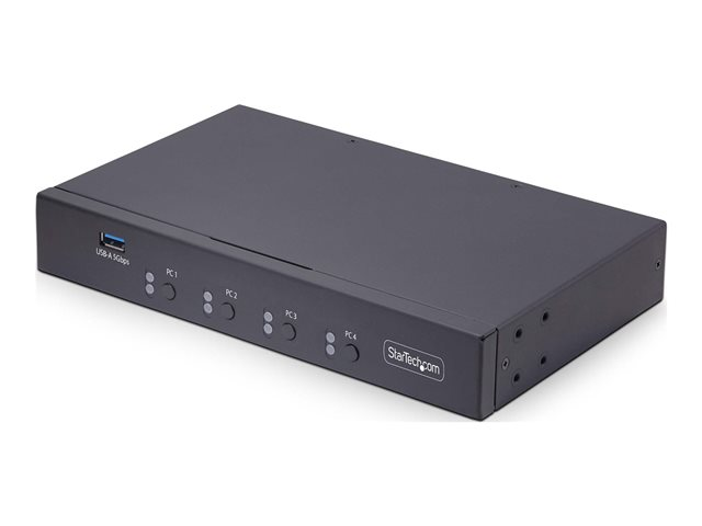 Produktbeskrivning StarTech.com 4-Port KM Switch with Mouse Roaming, USB Switch for Keyboard/Mouse, 3.5mm and USB Audio, Peripheral Sharing for 4 Computers, USB 3.0 Switcher, TAA Compliant - Hotkey/Pushbutton Switching (P4A20132-KM-SWITCH) - omkopplare för tangentbord/mus - 2 portar - TAA-kompatibel Typ av enhet Omkopplare för tangentbord/mus - 2 portar Undertyp USB Antal KVM-användare 1 lokal användare Funktioner Stålhus, musroaming Strömtillförsel AC 100-240 V Dimensioner (BxDxH) 13 cm x 22 cm x 3.4 cm Vikt 800 g Färg Svart TAA-kompatibel Ja Tillverkarens garanti 2 års garanti - Tillbehör