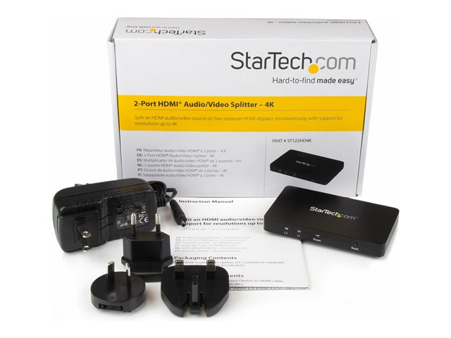 StarTech.com 4K HDMI-video-splitter med 2 portar ? 1x2 HDMI-splitter med hölje i solitt aluminium ? 4K @ 30 Hz