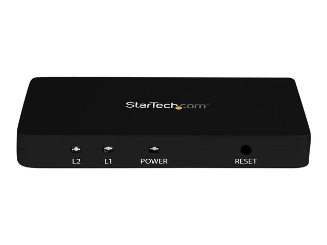 Produktbeskrivning StarTech.com 4K HDMI-video-splitter med 2 portar ? 1x2 HDMI-splitter med hölje i solitt aluminium ? 4K @ 30 Hz - video-/ljudomkopplare - 2 portar Typ av enhet Video-/ljudomkopplare - 2 portar Undertyp HDMI Portar 2 x HDMI Funktioner 4 K upplösningssupport Strömtillförsel AC 120/230 V Dimensioner (BxDxH) 6.15 cm x 10 cm x 1.4 cm Vikt 157 g Färg Svart Tillverkarens garanti 2 års garanti Designat för P/N: SVA5H2NEUA - Tillbehör