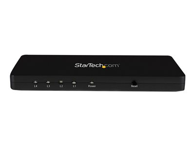 Produktbeskrivning StarTech.com 4K HDMI-video-splitter med 4 portar ? 1x4 HDMI-splitter med hölje i solitt aluminium ? 4K @ 30 Hz - video-/ljudomkopplare - 4 portar Typ av enhet Video-/ljudomkopplare - 4 portar Undertyp HDMI Portar 4 x HDMI Strömtillförsel AC 120/230 V Dimensioner (BxDxH) 8.5 cm x 13.9 cm x 1.4 cm Vikt 285 g Färg Svart Tillverkarens garanti 2 års garanti Designat för P/N: ST121HDBT20L, ST121HDBT20S, ST121HDBTE, SVA5H2NEUA - Tillbehör