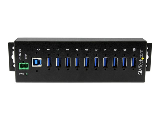 Produktbeskrivning StarTech.com USB 3.0-hubb med 10 portar - Industriell USB-A-hubb i metall med ESD- och överspänningsskydd - Monterbar på DIN-skena, vägg eller skrivbord - TAA-kompatibel USB-expansionshubb - hubb - 10 portar Typ av enhet Hubb - 10 portar Undertyp USB Portar 10 x SuperSpeed USB 3.0 Funktioner Överspänningsskydd, 15KV ESD Protector Standarder som följs USB 1.1, USB 2.0, USB 3.0 Strömtillförsel Likström 7 - 24 V Dimensioner (BxDxH) 19.8 cm x 5.6 cm x 3.1 cm Vikt 350 g Färg Svart Tillverkarens garanti 2 års garanti Designat för P/N: ITB20D3250, USB312SAT3CB, USB315CB2M, USBLT1MW, USBLT1MWS, USBLT2MBR, USBLT2MW, USBLT30CMW, USBLTM1MBK, USBLTM1MWH, UUSBHAUB1RA, UUSBHAUB3, UUSBHAUB3LA, UUSBHAUB3RA, UUSBHAUB6IN, UUSBHAUB6RA - Tillbehör