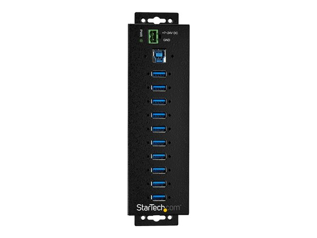 Industriell USB-A-hubb i metall med ESD- och 350 W överspänningsskydd - Monterbar på DIN-skena/vägg/skrivbord - Höghastighets USB 3.1 Gen 1 5 Gbps-hubb - hubb - 10 portar - TAA-kompatibel