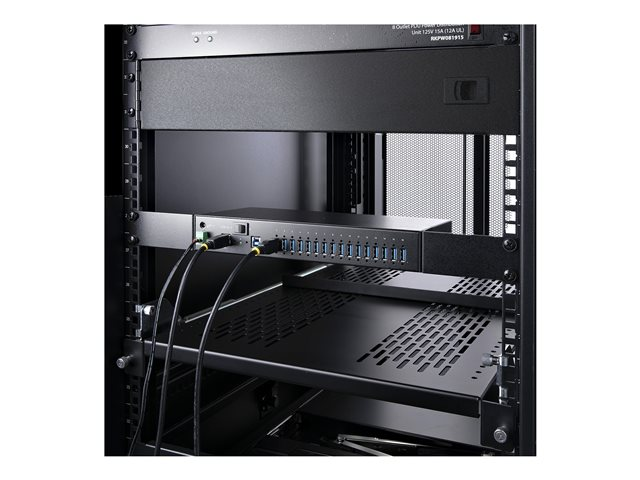 Produktbeskrivning StarTech.com 16-Port Industrial USB 3.0 Hub 5Gbps, Metal, DIN/Surface/Rack Mountable, ESD Protection, Terminal Block Power, up to 120W Shared USB Charging, Dual-Host Hub/Switch (5G16AINDS-USB-A-HUB) - hubb - industriell - 16 portar - rackmonterbar Typ av enhet Hubb - 16 portar Modell Rackmonterbar 1U Undertyp USB Portar 16 x USB 3.2 Gen 1 Prestanda Dataöverföringshastighet: 5 Gbit/s Funktioner Skruvlås, metallhölje, 8KV ESD-skydd (kontakturladdning), 15KV ESD-skydd (luftrumsurladdning), växelknapp, stöd för snabbladdning Standarder som följs USB 3.0, USB 3.2 Gen 1, Battery Charging 1.2 Dimensioner (BxDxH) 28 cm x 13 cm x 4.3 cm Vikt 1.1 kg Färg Svart Tillverkarens garanti 2 års garanti - Tillbehör