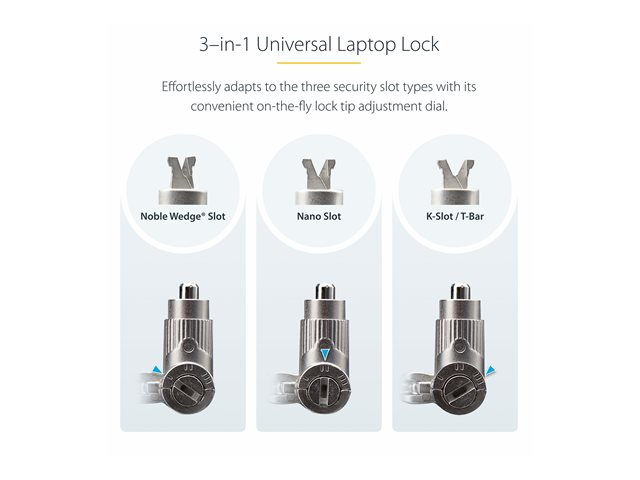 StarTech.com 3-in-1 Laptop Lock Compatible w/Noble Wedge/Nano/K-Slot