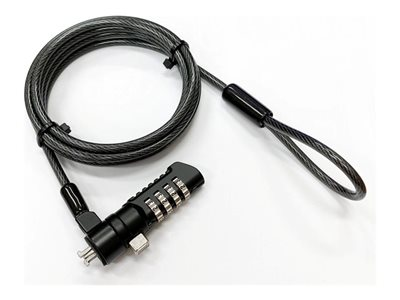 Produktbeskrivning eSTUFF - lås för säkerhetskabel - with 4-wheel combination, for nano security slot Produkttyp Lås för säkerhetskabel - with 4-wheel combination, for nano security slot Produktmaterial PVC, zinklegering, kolstål Längd 1.8 m Vikt 130 g Egenskaper Skärresistent, skydd, 7x7 kabelkonstruktion, 10 combinations Tillverkarens garanti 3 års garanti - Nedladdningsbara filer