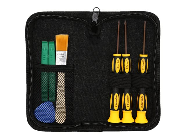 Produktbeskrivning DELTACOIMP VK-60 - game console repair tool set - 8 delar Produkttyp Game console repair tool set - 8 delar Förpackningsinnehåll Skruvmejsel - torx T6, 2 petverktyg, 2 brytverktyg, trekantigt brytverktyg, screwdriver - torx T8H, screwdriver - torx T10H Hållare Väska - nylon - Nedladdningsbara filer