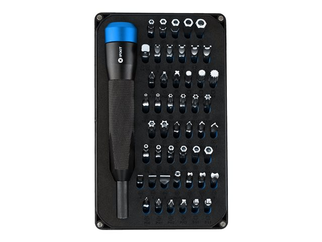 Produktbeskrivning iFixit Mahi Precision Bit Set - skruvmejsel med bituppsättning - 48 delar Produkttyp Skruvmejsel med bituppsättning - 48 delar Förpackningsinnehåll Skruvmejselhandtag, 3 skruvmejselbits - pozidriv PZ1, PZ2, PZ3, 4 skruvmejselbitar - tri-wing TRI1, TRI2, TRI3, TRI4, 4 skruvmejselbits - phillips PH0, PH1, PH2, PH3, 3 skruvmejselbitar - klo CL1, CL2, CL3, 3 skruvmejselbitar - spline M5, M6, M8, adapter 1/4" hex till 1/4" fyrkant, 3 skruvmejselbitar - slot 4, 6, 8 mm, 5 skruvmejselbitar - spanner SP4, SP6, SP8, SP10, SP12, 2 skruvmejselbitar - square SQ2, SQ3, 8 skruvdragarbitar - manipulationssäker torx TR10, TR15, TR20, TR25, TR27, TR30, TR35, TR40, 5 skruvmejsel-bits - manipulersäkra hex 4, 5, 6, 7, 8 mm, 6 skruvmejsel-bits - manipulersäkra hex 1/8, 9/64, 5/32, 3/16, 7/32, 1/4 tum Spets Torx, phillips, pozidriv, hex, slot, square, tri-wing, skruvnyckel, klo, spline - PH0, PH1, PH2, PH3, PZ1, PZ2, PZ3, H4, H5, H6, H8, SL4.0, SL6.0, SL8.0, SQ2, SQ3, H1/8", H5/32", H3/16", H7/32", H1/4", TRI1, TRI2, TRI3, H9/64", H7, TRI4, SP4, SP6, SP8, SP10, TR10, TR15, TR20, TR30, TR25, TR27, TR35, TR40, M5, M6, M8, SP12, CL1, CL2, CL3 Produktmaterial Stål, anodiserad aluminium Hållare Fodral - ABS-plast - Nedladdningsbara filer
