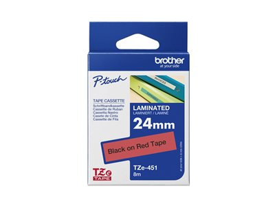 Produktbeskrivning Brother TZe-451 - bandlaminat - 1 kassett(er) - Rulle ( 2,4 cm x 8 m) Typ av produkt Bandlaminat Limtyp Självhäftande Mediastorlek Rulle ( 2,4 cm x 8 m) Utskriftsteknik Termisk överföring Mediefärger Svart på röd Medföljande antal 1 kassett(er) Kompatibel med P-Touch PT-2100, PT-2420, PT-2430, PT-2470, PT-2480, PT-2700, PT-2730, PT-3600, PT-7500, PT-7600, PT-9200, PT-9400, PT-9500, PT-9600, PT-9700, PT-9800, PT-D450, PT-D600, PT-D800, PT-H500, PT-P700, PT-P750, PT-P900, PT-P950; P-Touch Cube Plus PT-P710; P-Touch Cube Pro PT-P910 - Tillbehör
