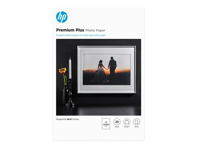 Produktbeskrivning HP Premium Plus Photo Paper - fotopapper - blank - 20 ark - A3 - 300 g/m² Typ av produkt Fotopapper Ytbeläggning Blank Mediastorlek A3 (297 x 420 mm) Utskriftsteknik Bläckstråle Medievikt 300 g/m² Medföljande antal 20 ark Kompatibel med Business Inkjet 2800; Deskjet 1280, 9650, 9670, 9680, 9800, 9803, 9860; ENVY Inspire 7255, 7920, 7955, 7958; Officejet 7000 E809, 7500, 7510, K7100, K7103; Officejet Pro 7720, K850, K8600; Photosmart 6510 B211, 6515 B211, 8750, 8753, Pro B8350, Pro B8353, Pro B8550, Pro B8850, Pro B9180 - Nedladdningsbara filer