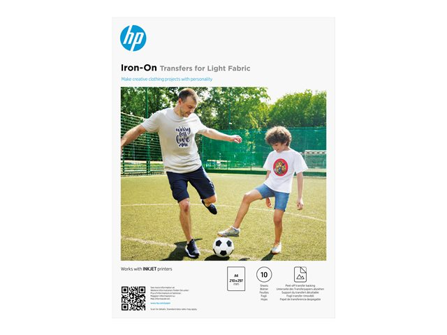Produktbeskrivning HP - transfertryck - 10 etikett (er) - A4 Typ av produkt Transfertryck Mediastorlek Lätt tyg A4 (210 x 297 mm) Medföljande antal 10 etikett (er) - Nedladdningsbara filer