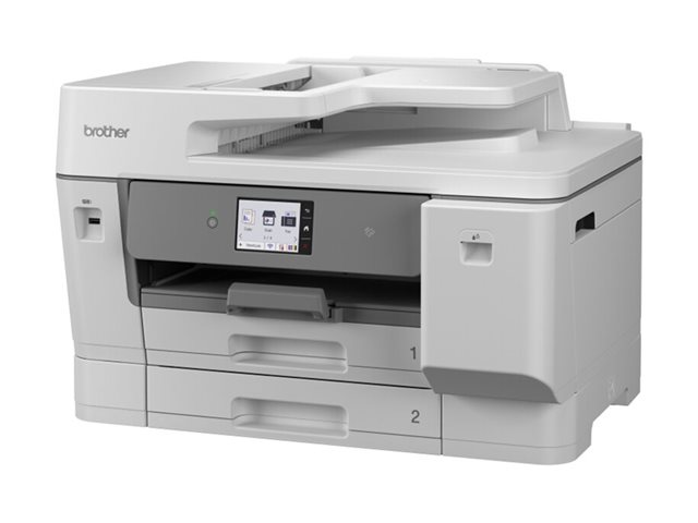 Produktbeskrivning Brother MFC-J6975DW - multifunktionsskrivare - färg Typ av enhet Multifunktionsskrivare Faxtyp Vanligt papper Utskriftsteknik Bläckstråle (färg) Bläckstråleteknik 4-färgs Driftscykel per månad (max) 350000 sidor Max kopieringshastighet Upp till 25 sidor/minut (mono)/upp till 16 sidor/minut (färg) Max kopieringsupplösning Upp till 1200 x 4800 dpi (mono)/upp till 1200 x 4800 dpi (färg) Max utskriftshastighet Upp till 31 sidor/minut (mono)/upp till 31 sidor/minut (färg) Max utskriftsupplösning Upp till 1200 x 4800 dpi (mono)/upp till 1200 x 4800 dpi (färg) Maximal utskriftsupplösningsklass Upp till 1200 x 4800 dpi (mono)/upp till 1200 x 4800 dpi (färg) Skanning 1200 x 2400 dpi Originalstorlek A3 (297 x 420 mm) (max) Originaltyp Ark Dokumentmatarens kapacitet 50 ark Mediastorlek A3 (297 x 420 mm) (max) Mediatyp Kuvert, vanligt papper, returpapper, fotopapper, glansigt papper, kort Standard mediekapacitet 250 ark Max mediekapacitet 850 ark Kapacitet hos förbikopplande dokumentmatare 100 ark Utmatningsfackens kapacitet 100 ark Automatisk duplex Ja (kopiering) Ja (utskrift) Ja (skannar) Anslutningsmöjlighet Ja Gränssnitt USB 2.0, LAN, Wi-Fi(n), USB 2.0-värd AirPrint-aktiverad Ja Kontorsmaskinfunktioner Skanna till e-postserver, skanna till sFTP, skanna till OCR, skanna till SharePoint Strömtillförsel AC 230 V (50/60Hz) Dimensioner (BxDxH) 57.6 cm x 37.5 cm x 51.06 cm Vikt 23.5 kg Miljöstandarder Blue Angel Tillverkarens garanti 3 års garanti - Tillbehör