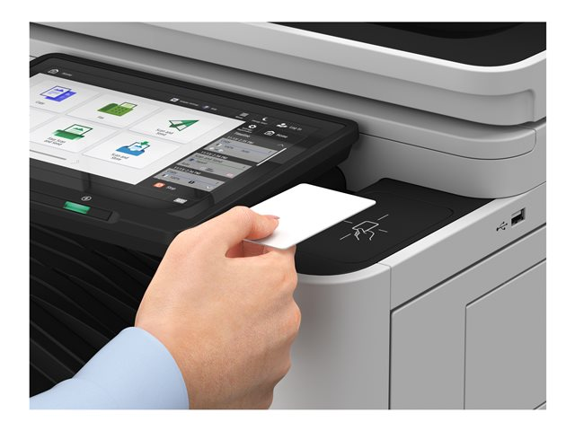 Produktbeskrivning Canon imageFORCE C5140 - multifunktionsskrivare - färg Typ av enhet Multifunktionsskrivare Utskriftsteknik Laser (färg) Max kopieringshastighet Upp till 40 sidor/minut (mono)/upp till 40 sidor/minut (färg) Max kopieringsupplösning Upp till 600 x 600 dpi (mono)/upp till 600 x 600 dpi (färg) Max utskriftshastighet Upp till 40 sidor/minut (mono)/upp till 40 sidor/minut (färg) Max utskriftsupplösning Upp till 4800 x 2400 dpi (mono)/upp till 4800 x 2400 dpi (färg) Skanning 600 x 600 dpi Originalstorlek B5 (176 x 250 mm) (min) - SRA3 (320 x 450 mm) (max) Originaltyp Ark Mediastorlek 98 x 139.7 mm (min) - SRA3 (320 x 450 mm) (max) Mediatyp Vanligt papper, tunt papper, returpapper, färgat papper, tjockt papper, bestruket papper, transparent ritpapper, bond paper, OH-film, etiketter, förstansat papper, brevpapper, kuvert Standard mediekapacitet 1200 ark Max mediekapacitet 6350 ark Sorterare Tillval Arksamlare Tillval Häftapparat Tillval Inbindningsfunktion Tillval Automatisk duplex Ja (kopiering) Ja (utskrift) Ja (skannar) Anslutningsmöjlighet Ja Gränssnitt USB 2.0, Wi-Fi(ax), Gigabit LAN, USB 2.0-värd, USB 3.0-värd AirPrint-aktiverad Ja Kontorsmaskinfunktioner Skanna till nätverk, skanna till USB-enhet, skanna till mobil enhet, Push Scan, Pull Scan, Trusted Platform Module (TPM) Strömtillförsel AC 220-240 V (50/60Hz) Dimensioner (BxDxH) 62 cm x 72.2 cm x 93.7 cm Vikt 105 kg Miljöstandarder Blue Angel - Nedladdningsbara filer