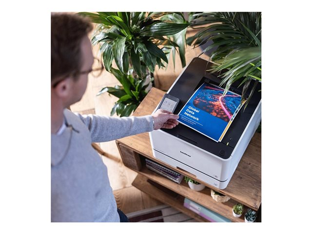 Upp till 33 spm - färgMaxupplösning (svart/vit) 2400 x 600 dpi Maxupplösning (färg) 2400 x 600 dpi Automatisk duplex Ja Gränssnitt USB 2.0, Gigabit LAN, Wi-Fi(n), USB-värd, NFC AirPrint-aktiverad Ja Storlek på förhandsgranskningsskärm 2.7" Processor 1.2 GHz RAM installerat (max) 512 MB Språksimulering PCL 6, BR-Script3, PDF 2.0 Mediatyp Kuvert, etiketter, vanligt papper, returpapper, glansigt papper Total mediekapacitet 450 ark Mediehantering Inmatningsfack för 250 ark, flerfunktionsfack för 50 ark Driftscykel per månad (max) 60000 sidor Rekommenderad månatlig volym Up to 5000 pages Nätverk Printserver Systemkrav Windows, Apple MacOS Miljöstandarder EPEAT Silver Dimensioner (BxDxH) 40.4 cm x 47.2 cm x 33.8 cm - Tillbehör