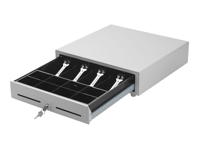 Produktbeskrivning Capture CA-CD410-480 - elektronisk kassalåda Produkttyp Elektronisk kassalåda Spänning som krävs 12 / 24 V Färg Vit Produktmaterial Metall, stål Dimensioner (BxDxH) 41 cm x 41.5 cm x 10 cm Vikt 6.8 kg Egenskaper Mikroswitch, 3-lägesnyckellås, avtagbar myntbricka med två rader och åtta fack, 2 st. främre åtkomstplatser (för kontroller och kortkvitton), sedelfack med fyra metallsedelklämmor Tillverkarens garanti 2 års garanti - Tillbehör