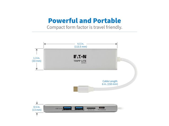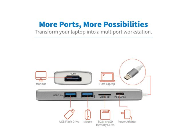 Eaton Tripp Lite Series USB C Docking Station Adapter, 4K @ 30 Hz, HDMI, Thunderbolt 3, PD Charging, Micro SD
