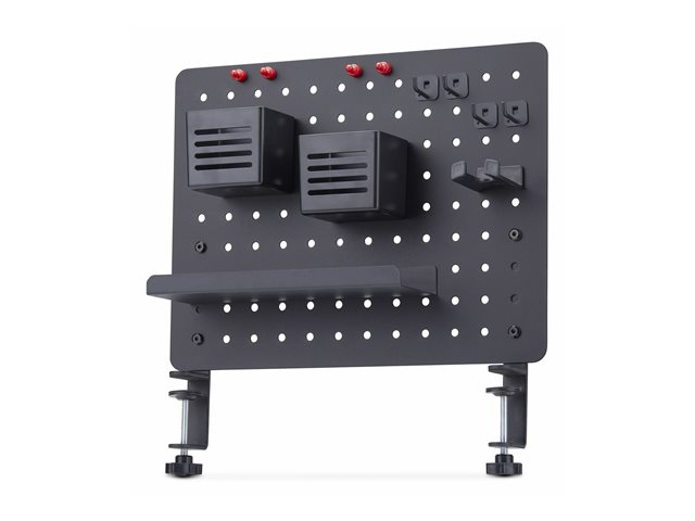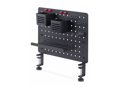 Produktbeskrivning StarTech.com Clamp-On Pegboard with Accessories, 16.5 x 12.5in (42 x 32cm), Steel Pegboard, Desktop Storage Organizer, Desk Mount Peg Board, Black monteringskomponent - clamp-on - svart Typ av produkt Monteringskomponent (clamp-on) - disk-monteringsbar Monteringskomponenter Pegboard panel Dimensioner (BxDxH) 42 cm x 48.5 cm x 32 cm Vikt 2.6 kg Material Stål Färg Svart Förpackningens innehåll Headset hanger, 4 x hooks, 4 x magnets, 2 x containers, 4 x holders, 2 x desk clamps Tillverkarens garanti 2 års garanti - Nedladdningsbara filer