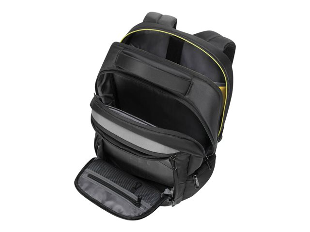 Produktbeskrivning Targus CityGear Laptop Backpack - ryggsäck för bärbar dator Produkttyp Ryggsäck för bärbar dator Färg Svart Produktmaterial Polyuretan Dimensioner (BxDxH) 32.5 cm x 21 cm x 49 cm Vikt 1.15 kg Notebook-kompatibilitet 17.3" Datorstorlekar som stöds 15" - 17.3" / 38.1 cm - 43.9 cm Egenskaper Dome Protection System, stötabsorberande, nätfickor Bärrem Axelbärremmar, rem till rullväska, vadderat grepphandtag Tillverkarens garanti Begränsad livstidsgaranti - Nedladdningsbara filer