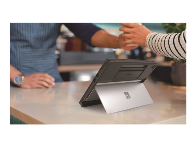 Produktbeskrivning Kensington BlackBelt EQ - baksidesskydd för surfplatta Typ av produkt Baksidesskydd för surfplatta Dimensioner (BxDxH) 28.5 cm x 1.7 cm x 20 cm Vikt 184 g Material Polykarbonat, ABS-plast, TPE (termaplastisk elastomer) Färg Svart Återvunnet produktinnehåll 40 % - tillverkat återvunnet konsumentmaterial Tillverkarens garanti 2 års garanti Designat för Microsoft Surface Pro - Nedladdningsbara filer