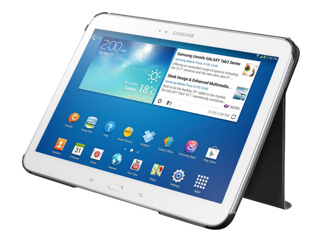Produktbeskrivning Samsung Book Cover EF-BP520B - vikbart fodral för surfplatta Typ av produkt Vikbart fodral för surfplatta Passar till skärmstorlek 10.1" Färg Novasvart Designat för Galaxy Tab 3 (10.1 tum) - Nedladdningsbara filer