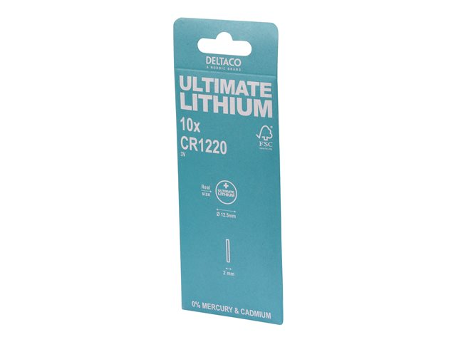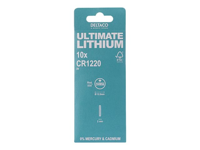 Produktbeskrivning DELTACO Ultimate batteri - 10 x CR1220 - Li Typ av produkt Batteri Batteri CR1220 - litium - 40 mAh Inkluderade batterier 10 delar - Nedladdningsbara filer